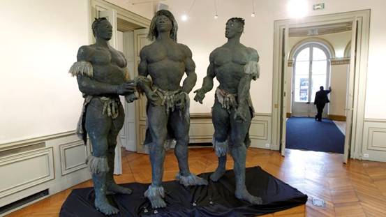 上圖均為安頓在巴黎第九區區當局年夜廳中的《祖魯人》七人雕塑作品,也是此次創拍賣價格新高的雕塑作品。