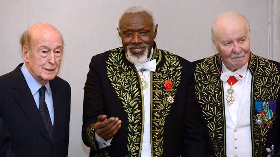 烏斯曼·索烏是首位受邀成為法蘭西美術院院士的非洲人。圖為2013年12月,烏斯曼·索AR擴增實境烏(中)參加院士受封儀式時的場景。